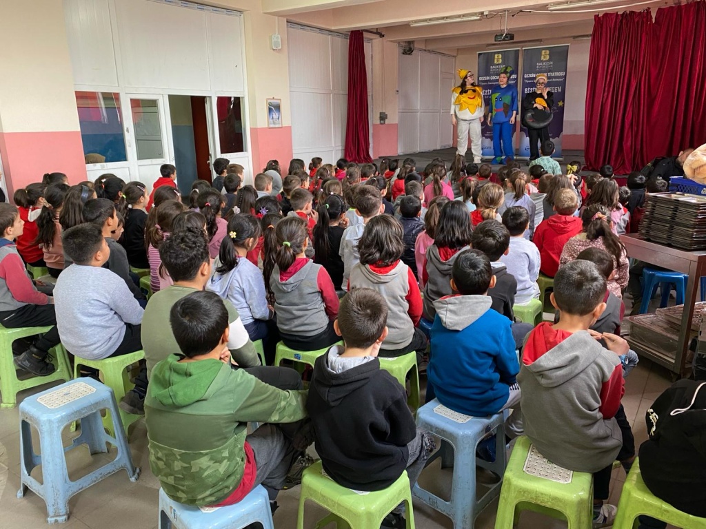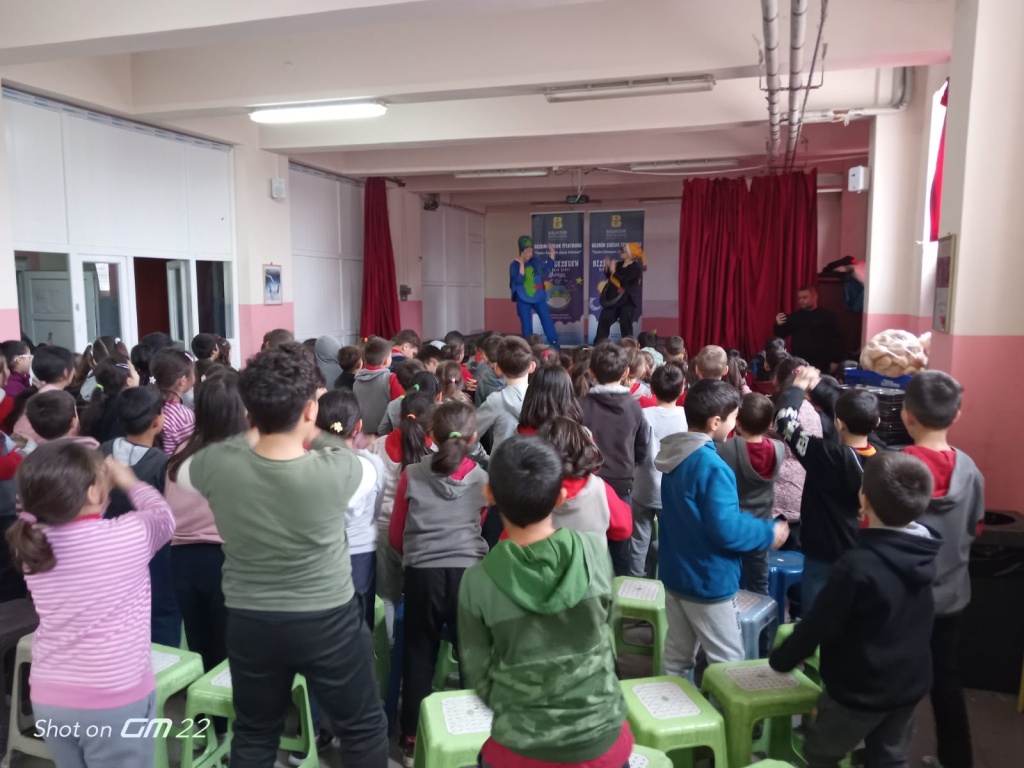 Balıkesir Büyükşehir Belediyesi Gezici Tiyatro ekibinin hazırlamış olduğu tek perde müzikli çocuk tiyatrosu okulumuz çok amaçlı salonunda oynandı. Sıfır Atık temalı tiyatro büyük beğeni topladı. Çevre bilinci, sağlılklı yaşam ve geri dönüşüm konusunda eğlenceli ve öğretici bir içerik sayesine öğrencilerimizde farkındalık oluştu. Bu organizasyonda emeği geçen herkese okulumuz adına teşekkür ediyoruz.